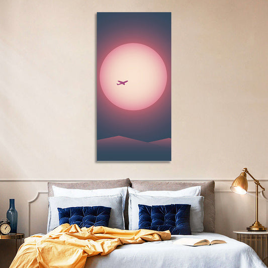 Airplane Flying Sunset Wall Art