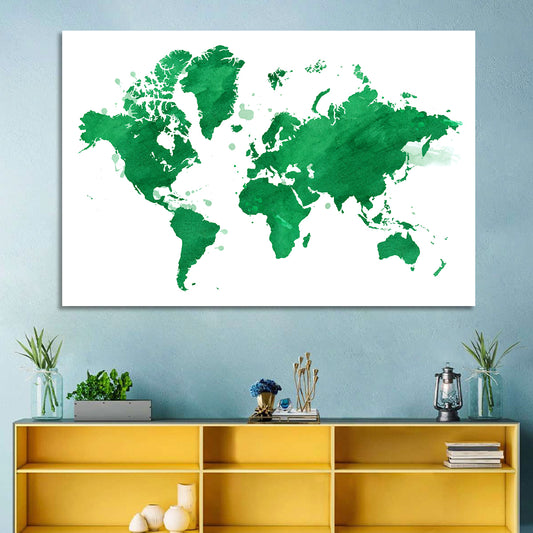 Green World Map Wall Art