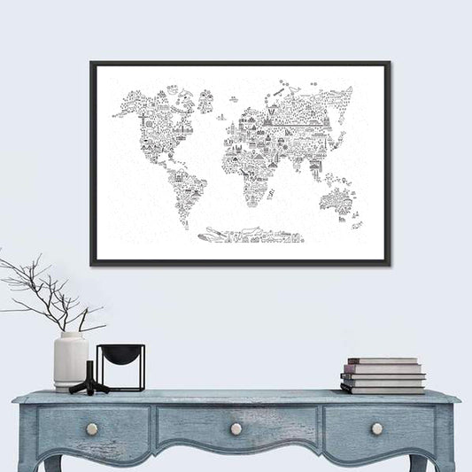 World Travel Line Icons Map Wall Art