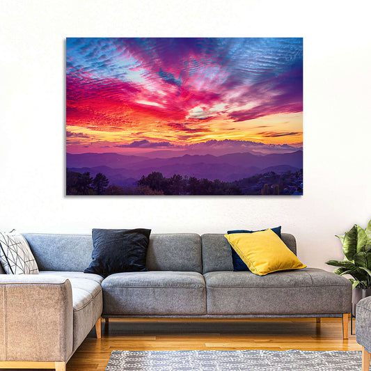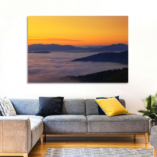 Cloudy Mountains Sunset Wall Art