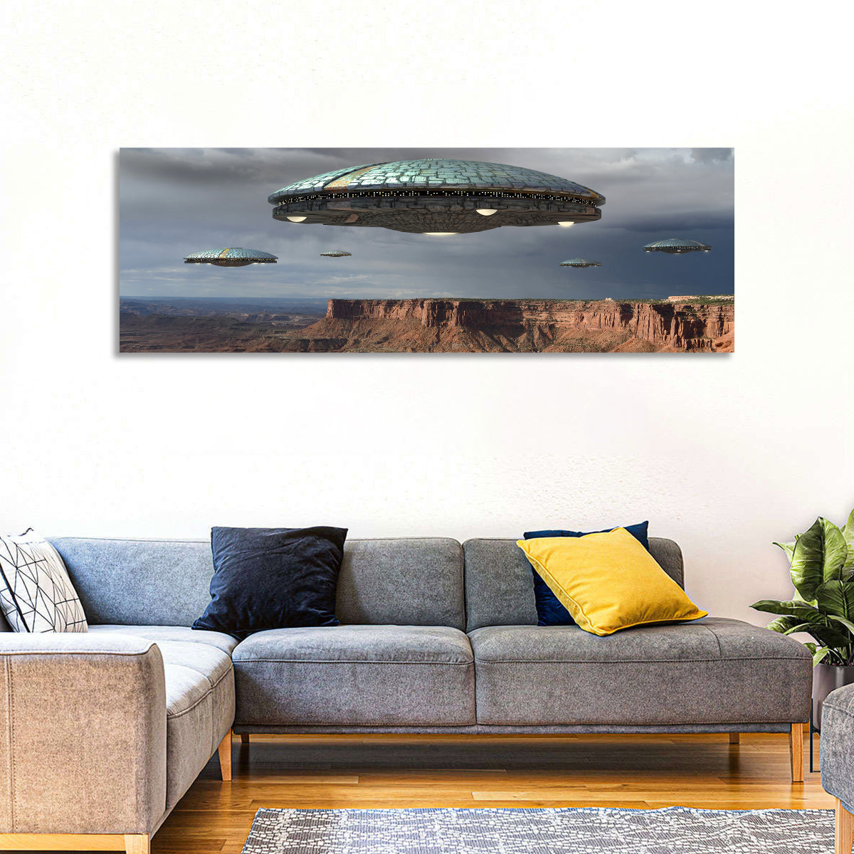 Whether you love art or just looking to decorate your home, this striking and powerful Alien Ships Wall Art is an eye-catching decor element that can't go unnoticed. This art print by CanvasPiece is designed to resonate and spark a mix of feelings.