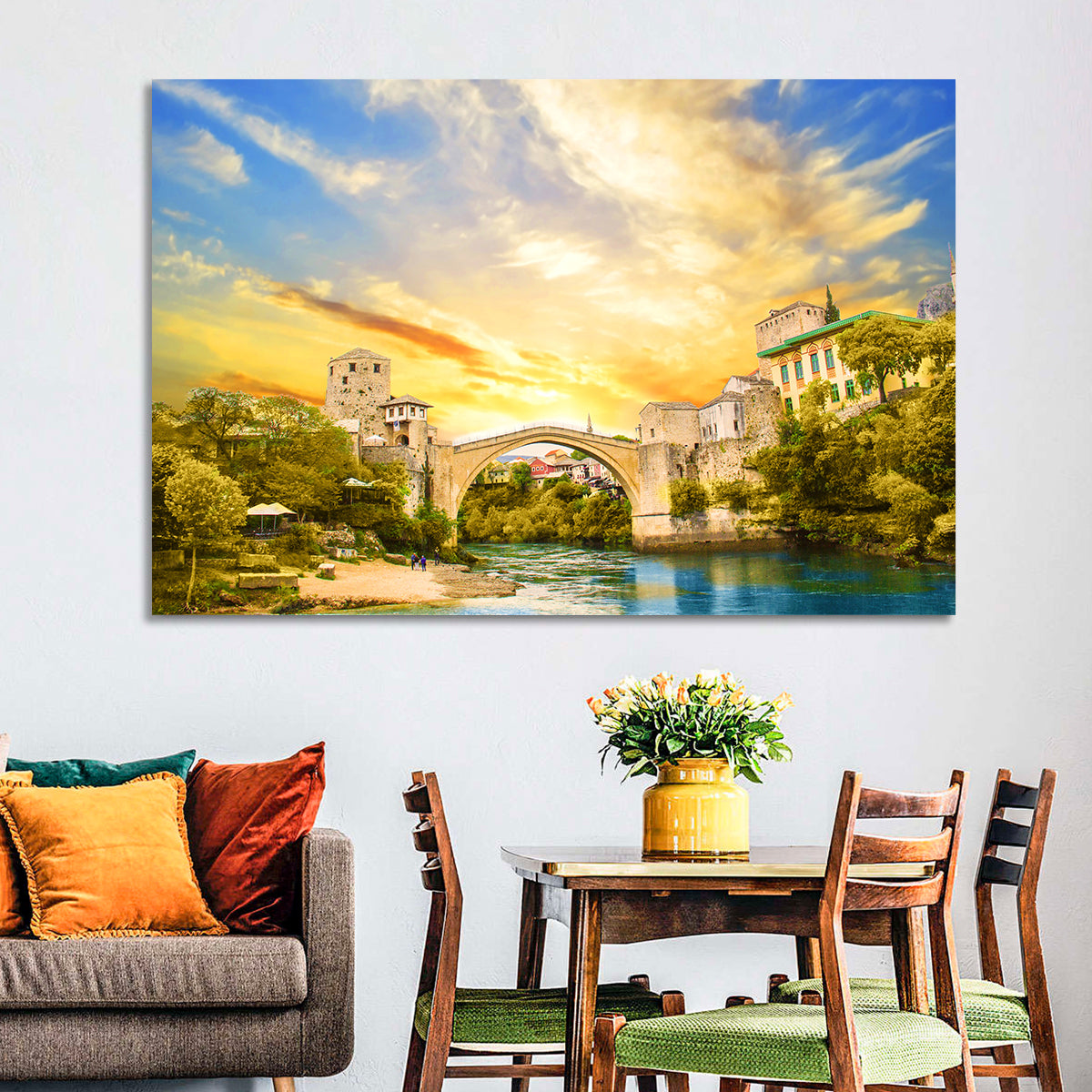Whether you love art or just looking to decorate your home, this striking and powerful Bridge Over Neretva River Wall Art is an eye-catching decor element that can't go unnoticed. This art print by CanvasPiece is designed to resonate and spark a mix of feelings.