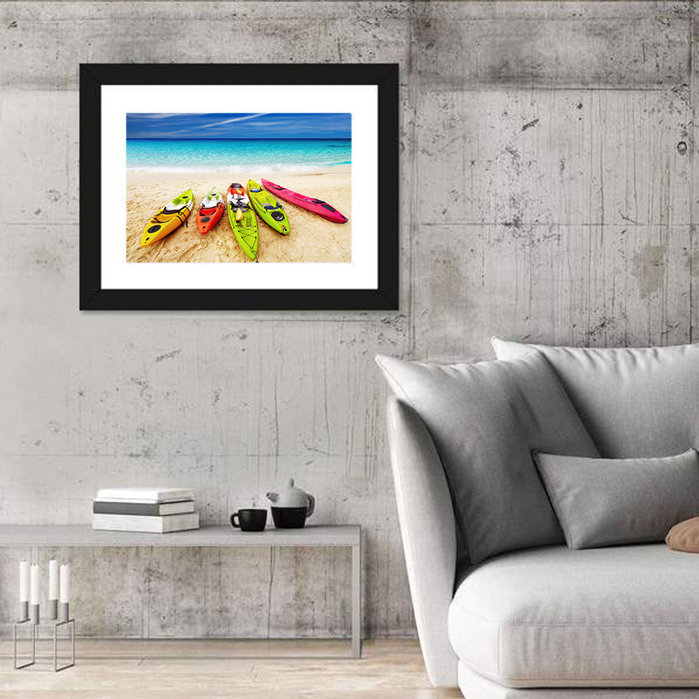 Colorful Kayaks On Beach Wall Art