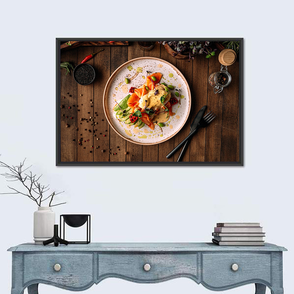 Whether you love art or just looking to decorate your home, this striking and powerful  european breakfast with bruschetta salmon avocado and cheese wall art is an eye-catching decor element that can't go unnoticed. This art print by CanvasPiece is designed to resonate and spark a mix of feelings.