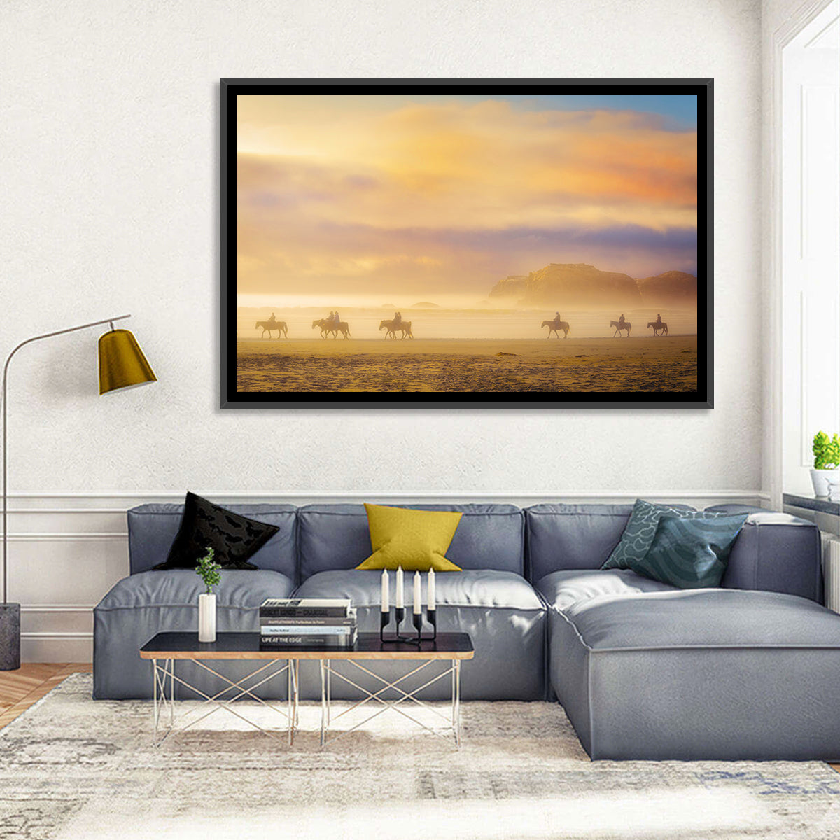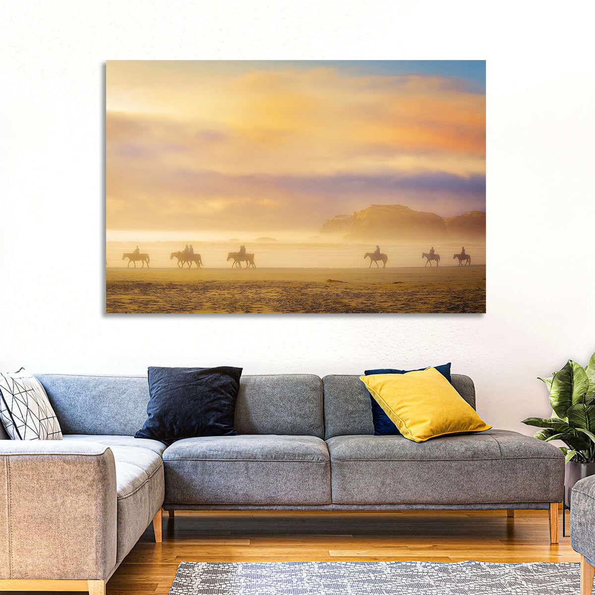 Whether you love art or just looking to decorate your home, this striking and powerful Horseback Riders Wall Art is an eye-catching decor element that can't go unnoticed. This art print by CanvasPiece is designed to resonate and spark a mix of feelings.