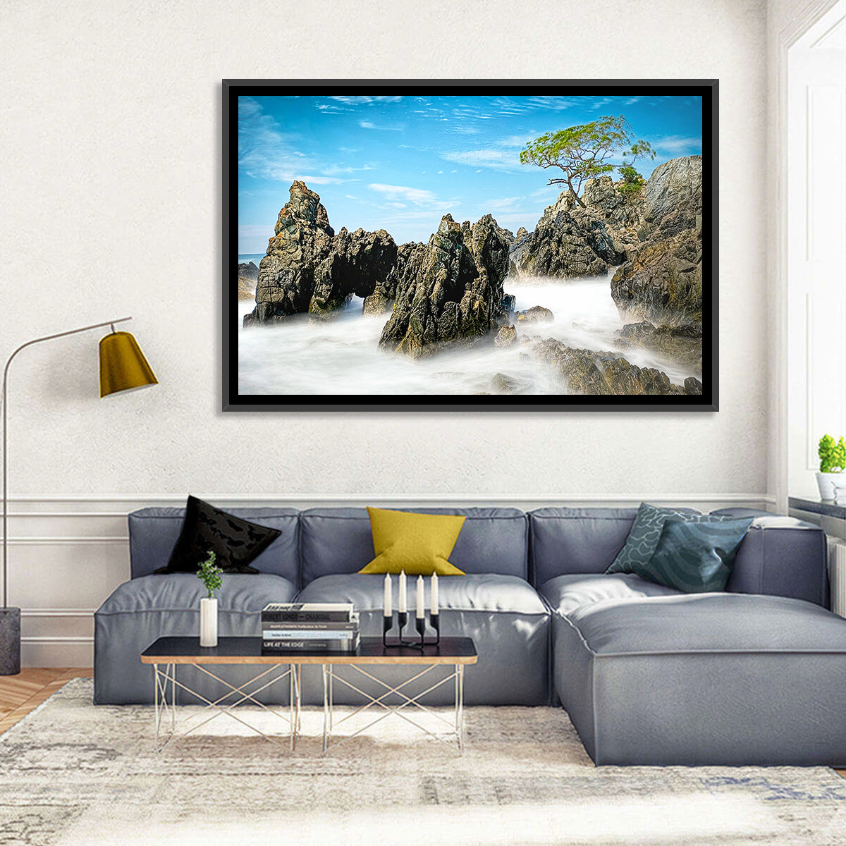 Whether you love art or just looking to decorate your home, this striking and powerful Karang Bebay Beach Wall Art is an eye-catching decor element that can't go unnoticed. This art print by CanvasPiece is designed to resonate and spark a mix of feelings.