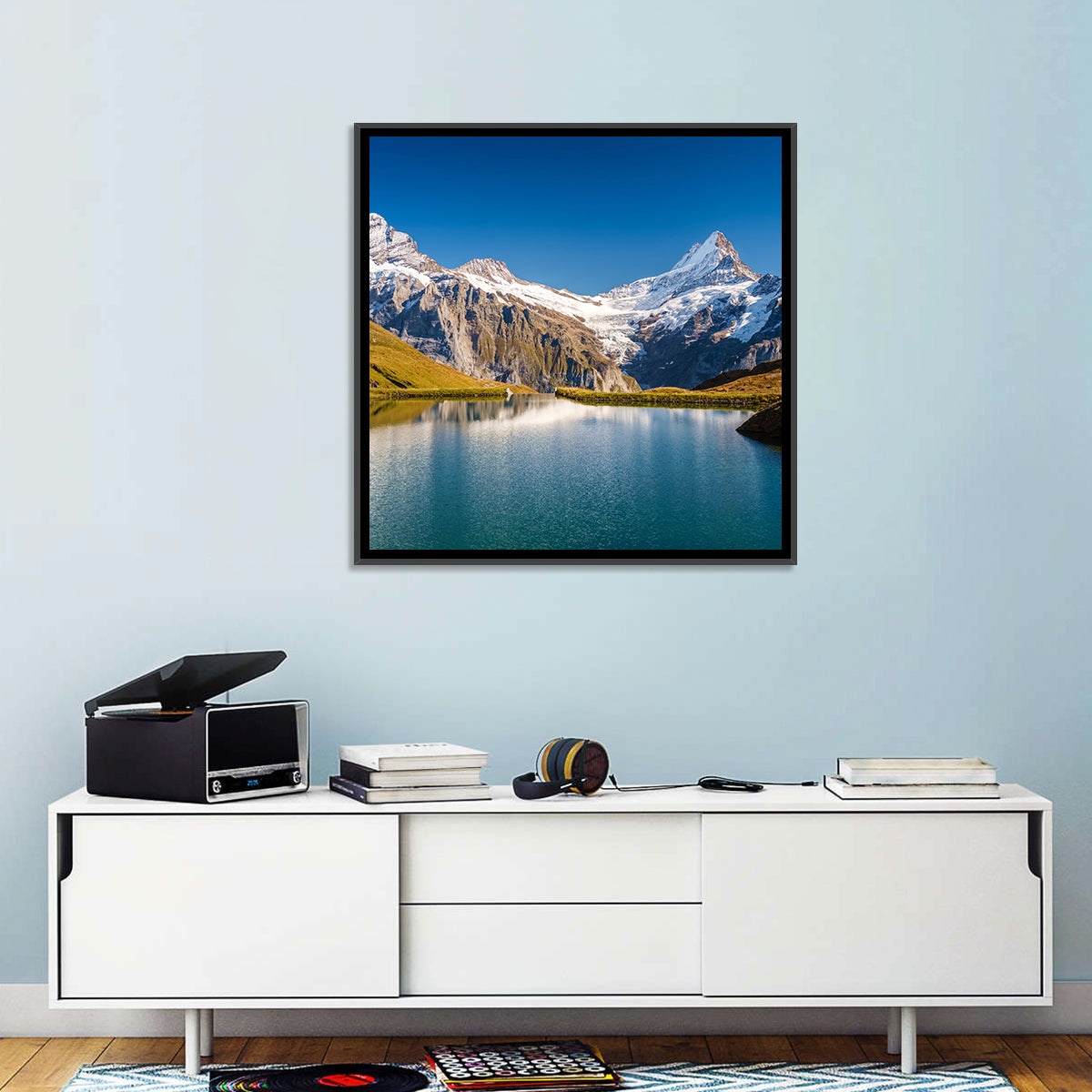 Whether you love art or just looking to decorate your home, this striking and powerful Lake Bachalpsee Wall Art is an eye-catching decor element that can't go unnoticed. This art print by CanvasPiece is designed to resonate and spark a mix of feelings.