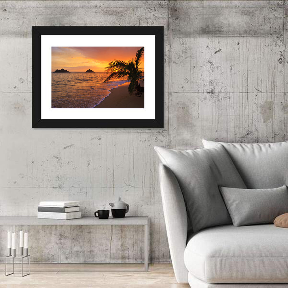 Whether you love art or just looking to decorate your home, this striking and powerful Lanikai Beach Sunrise Wall Art is an eye-catching decor element that can't go unnoticed. This art print by CanvasPiece is designed to resonate and spark a mix of feelings.