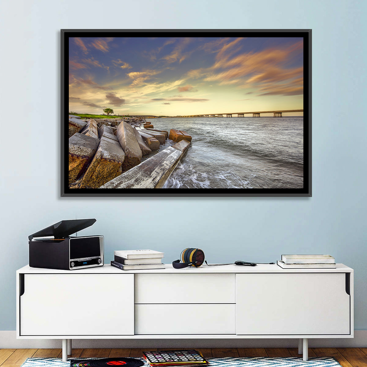 A canvas print mounted in a stylish frame, combining the depth of canvas with a polished finish.
