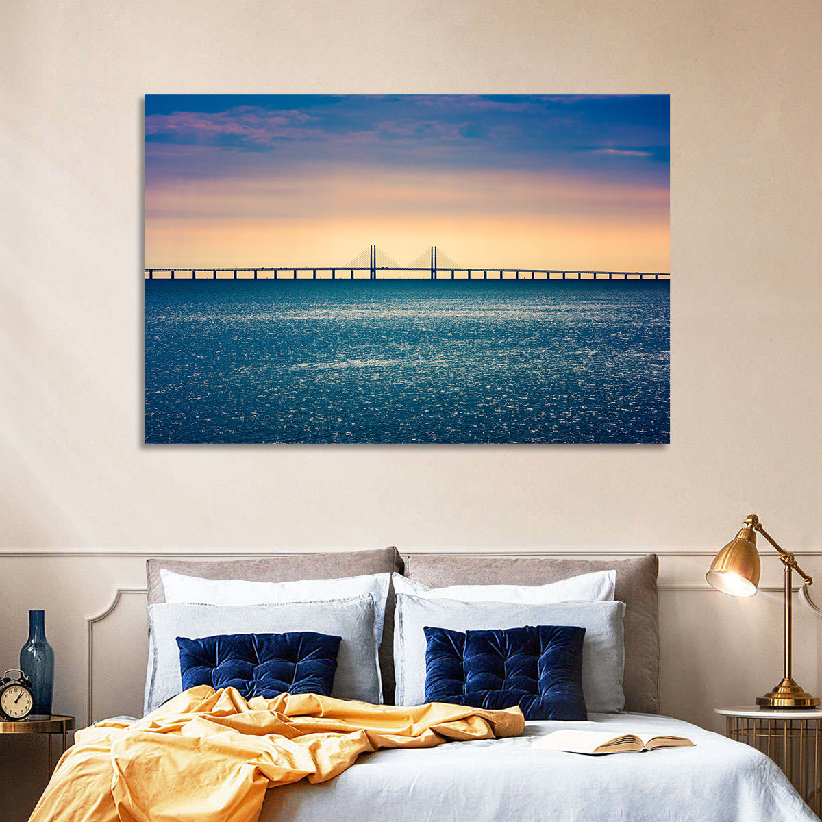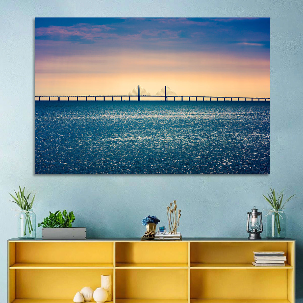 Whether you love art or just looking to decorate your home, this striking and powerful Oresund Bridge Wall Art is an eye-catching decor element that can't go unnoticed. This art print by CanvasPiece is designed to resonate and spark a mix of feelings.