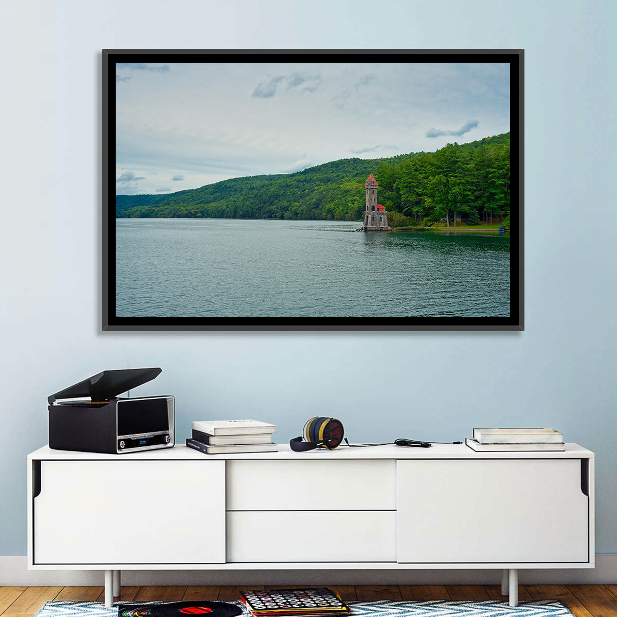 Whether you love art or just looking to decorate your home, this striking and powerful Kingfisher Tower & Otsego Lake Wall Art is an eye-catching decor element that can't go unnoticed. This art print by CanvasPiece is designed to resonate and spark a mix of feelings.