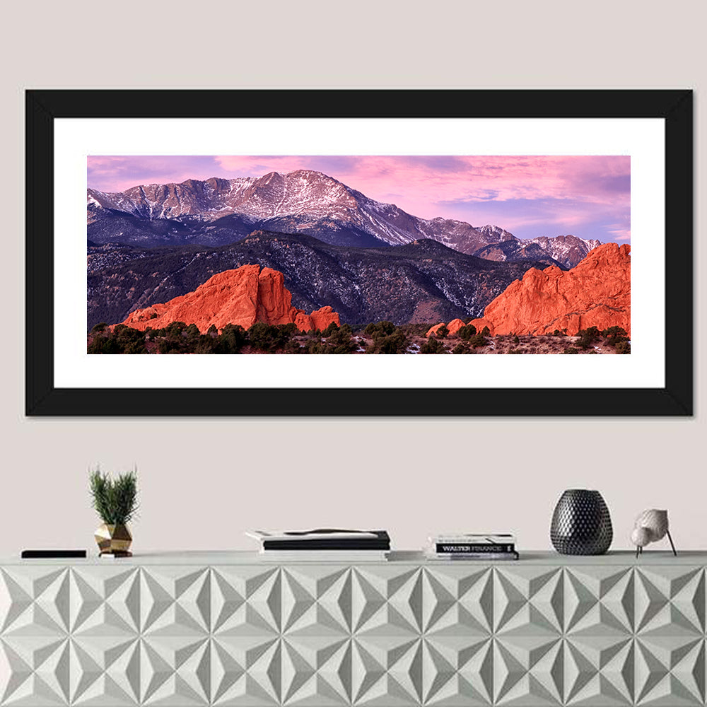 Add some color to your walls with Purple Pikes Peak Mountain wall art! Featuring a stunning view of Garden of the Gods in Colorado Springs, this powerful and striking piece is sure to catch the eye. Designed by CanvasPiece, it's perfect for home décor or art enthusiasts alike.