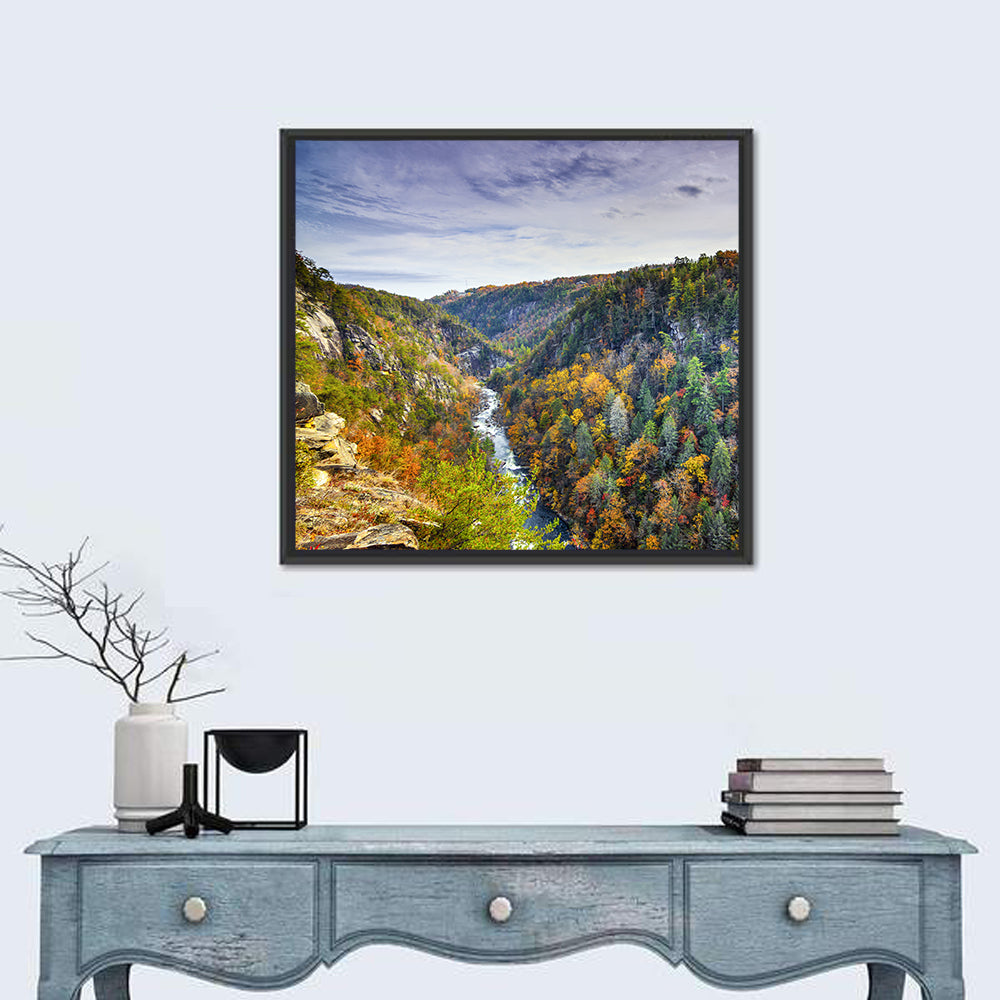 Whether you love art or just looking to decorate your home, this striking and powerful Tallulah Gorge State Park Wall Art is an eye-catching decor element that can't go unnoticed. This art print by CanvasPiece is designed to resonate and spark a mix of feelings.