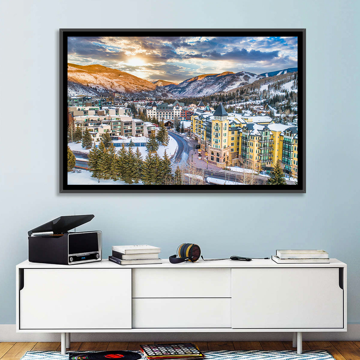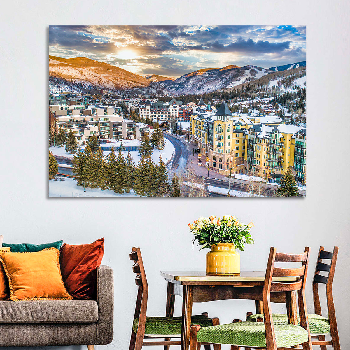 Whether you love art or just looking to decorate your home, this striking and powerful Vail Village Skyline Wall Art is an eye-catching decor element that can't go unnoticed. This art print by CanvasPiece is designed to resonate and spark a mix of feelings.