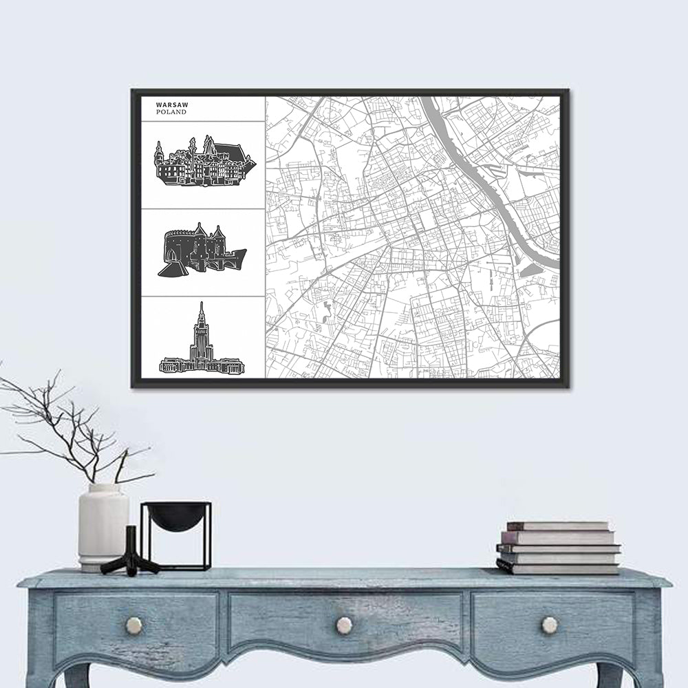Warsaw City Map Wall Art